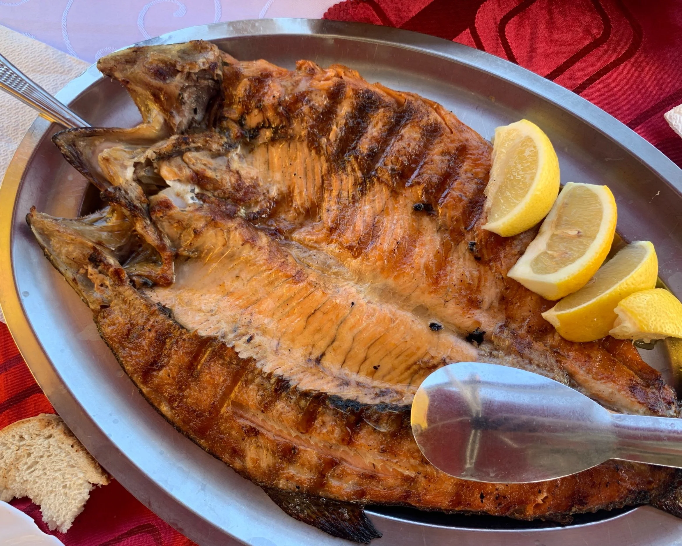 Overall, the food in Ohrid is very good — you’ll find a wide variety of salads, cheeses, millions of dips and of course grilled meat and fresh fish. The fish from the lake is more than safe to eat as the lake is protected and is home to an abundant bird and fish population. It’s absolutely worth the relative splurge! Speaking of prices, typically main dishes run between €5-€15 with fresh fish being the most pricey, still coming in under €20. Food is good pretty much everywhere. I haven’t yet had a bad meal and I’m extremely picky.